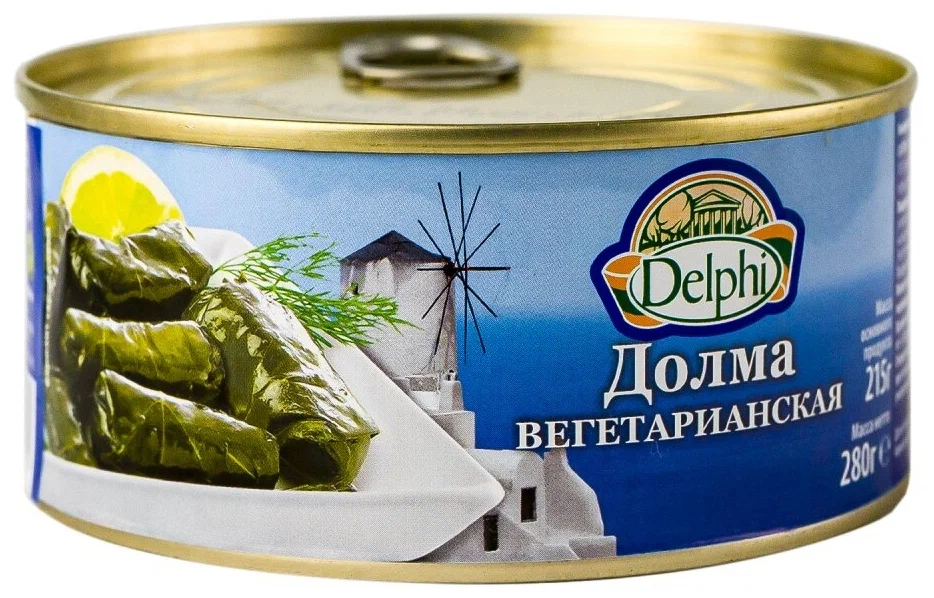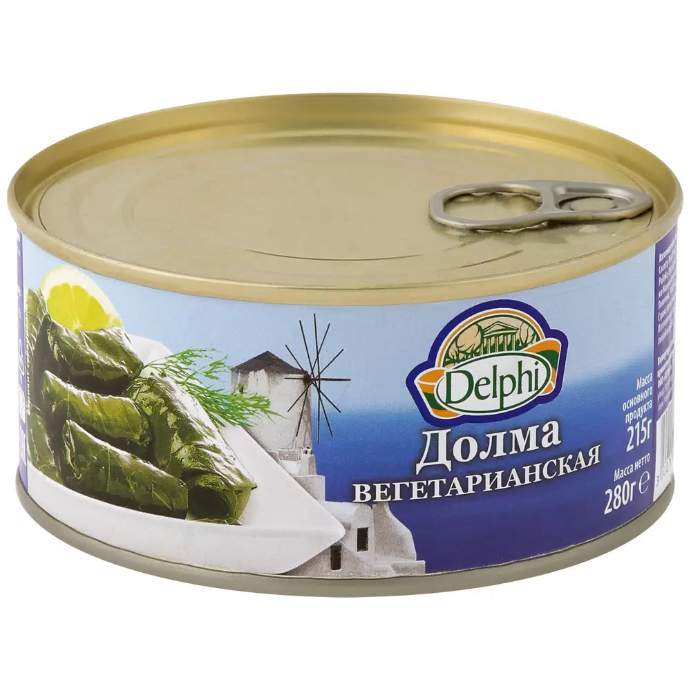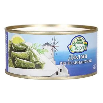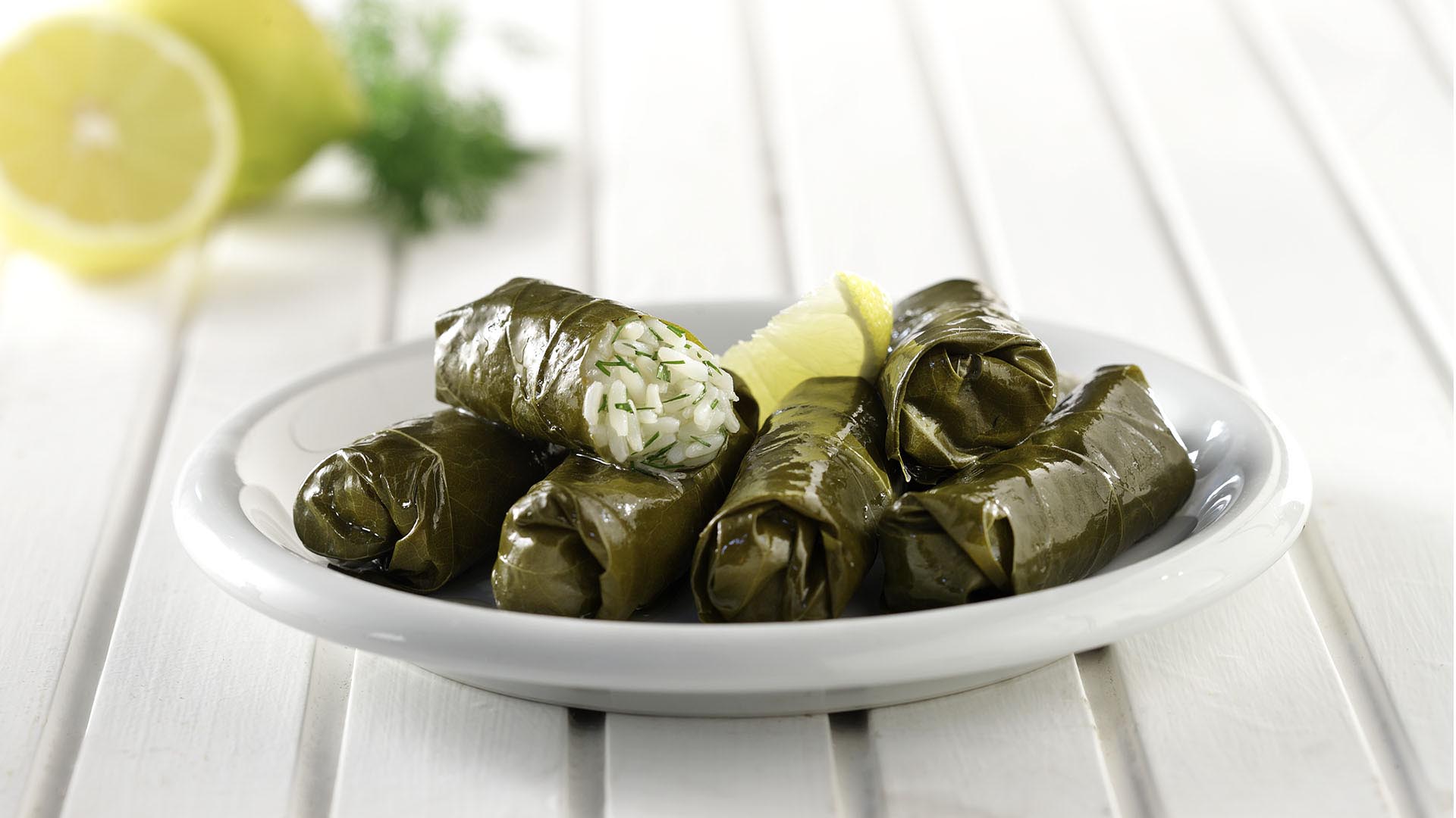 Долма, приготовленная по традиционным рецептам из виноградных листьев, фаршированных рисом и репчатым луком.